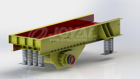 振动给料机是一种常用的给料设备,在生产中可以将块状或颗粒状的物料均匀、连续的送至受料设备,是整条生产线的一道工序。其后经常跟颚式破碎机破碎,振动给料机的工作效率不仅对颚破的产能有重要影响,对整条生产线的生产效率也有影响。