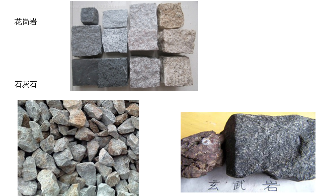 石灰岩主要成份是方解石,石英岩主要成份是纯石英,花岗岩基本是由石英及长石组成,片麻岩与花岗岩基本相同,只不过是表面风化或有裂纹、或呈层装、或叶片状。杂砂岩中含石英41%和36%的方解石,玄武岩中长石与辉石占79%,辉绿岩占68%,且辉绿岩中有9%的极软方解石,所以玄武岩比辉绿岩磨损大;而白云岩本身是一种含三类碳酸盐较多的石灰石或大理石,所以其磨损率比石灰石大一些。